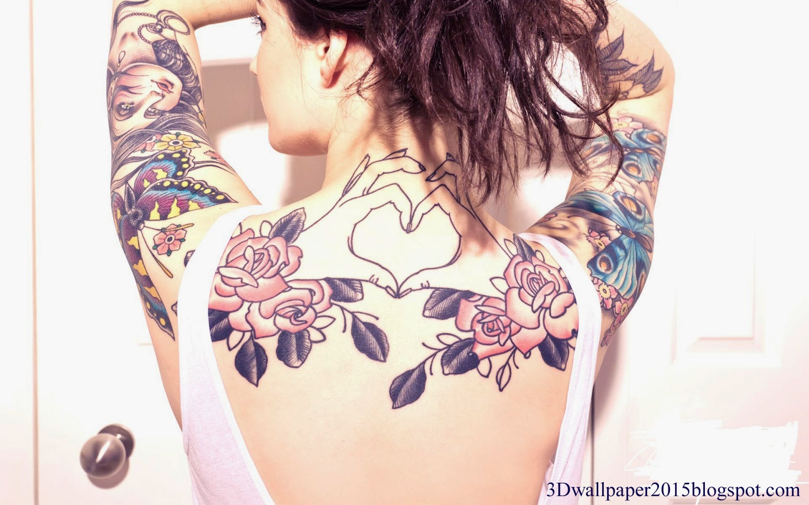 3d Wallpapers Girls Flowers On Back Tattoos 3d Wallpaper