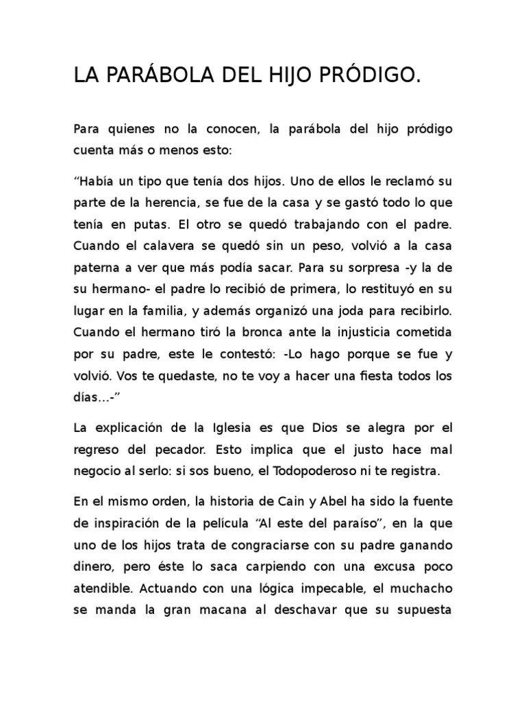 Resumen De La Parabola Del Hijo Prodigo Para Ninos De Primaria
