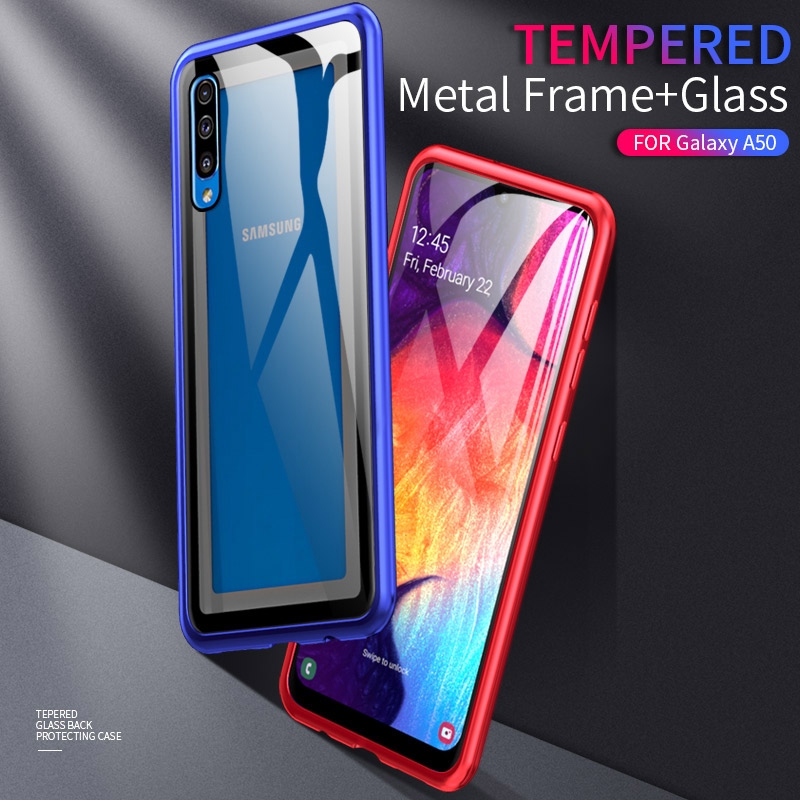 Samsung Galaxy A50 A60 A70 Metal Bumper Back Cover Clear Tempered